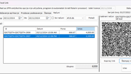Fiskal Link omogućava jednostavnu i brzu štampu kopija fiskalnih računa sa originalnim QR kodom, potpuno usklađenu sa eFiskal sistemom.